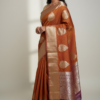 Border: A contrasting antique gold zari border with a smooth, solid finish frames the saree perfectly, adding a touch of traditional grandeur.